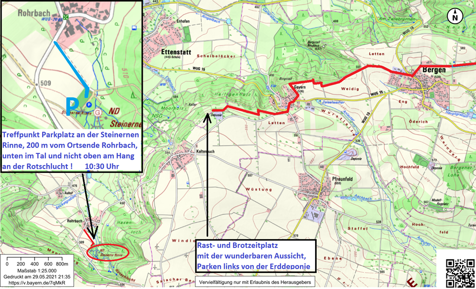 Achtung: nicht am oberen Parkplatz an der Rotschlucht! Unten am Ortsschild von Rohrbach geht es etwa 200m rein, dort ist der Parkplatz.
