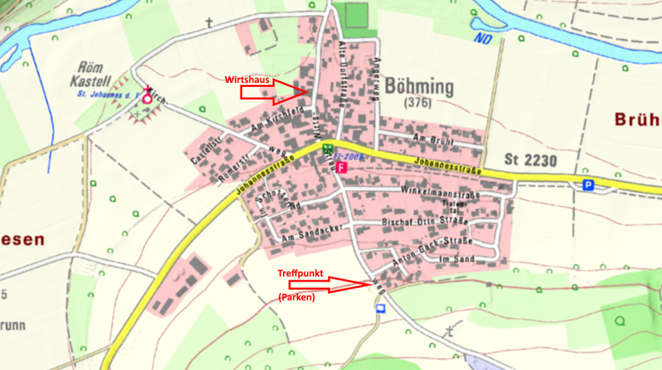Abendessen ist reserviert für 17:30 im Restaurant Römercastell in Böhming, Wirtsstr. 9 (Familie Weber, vormals Schattenhofer in Beilngries).